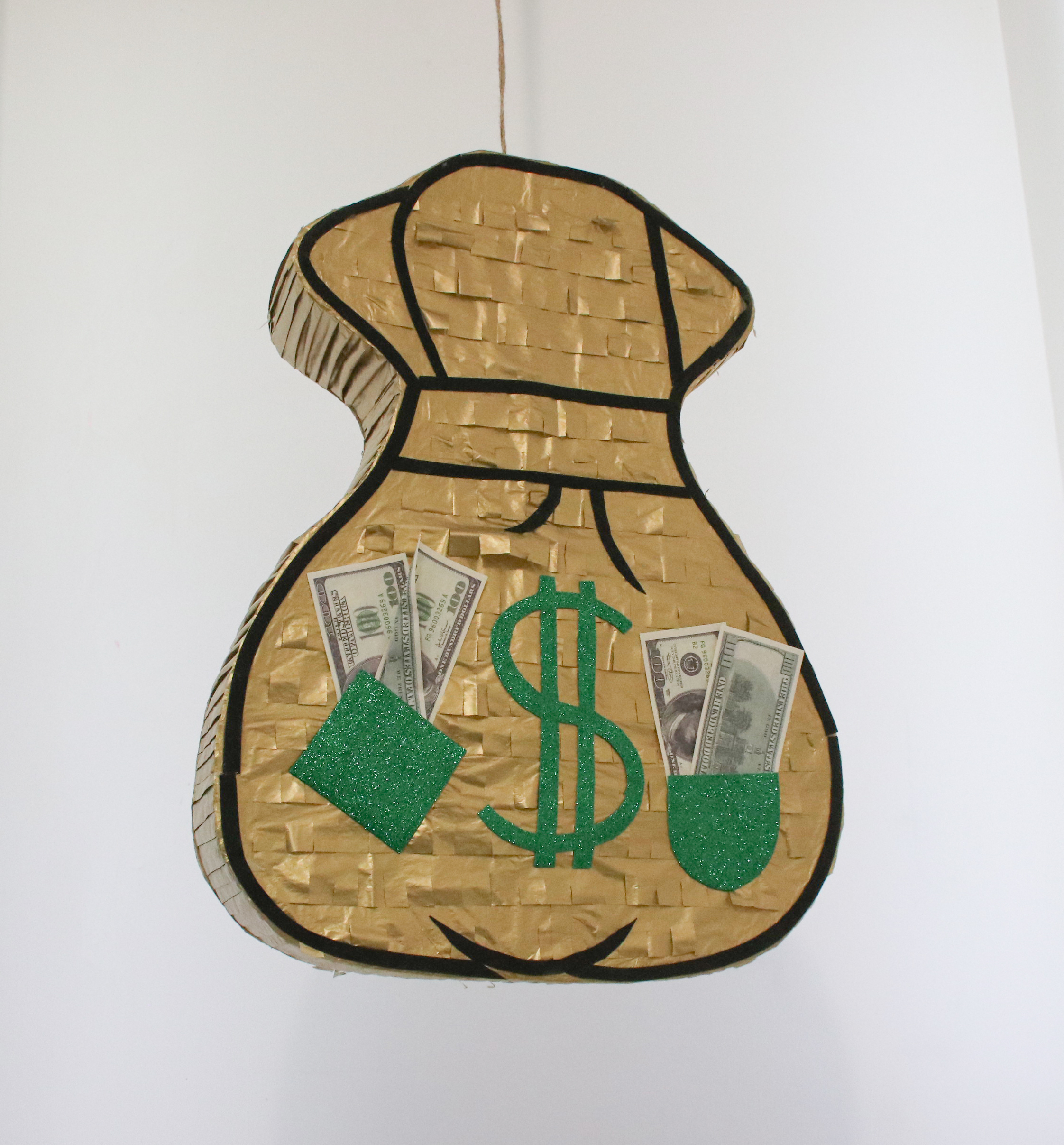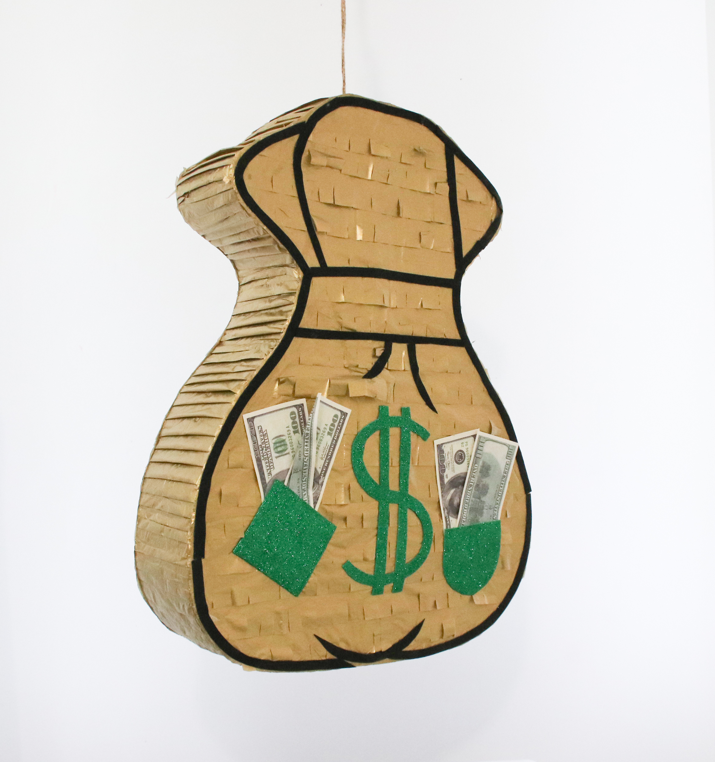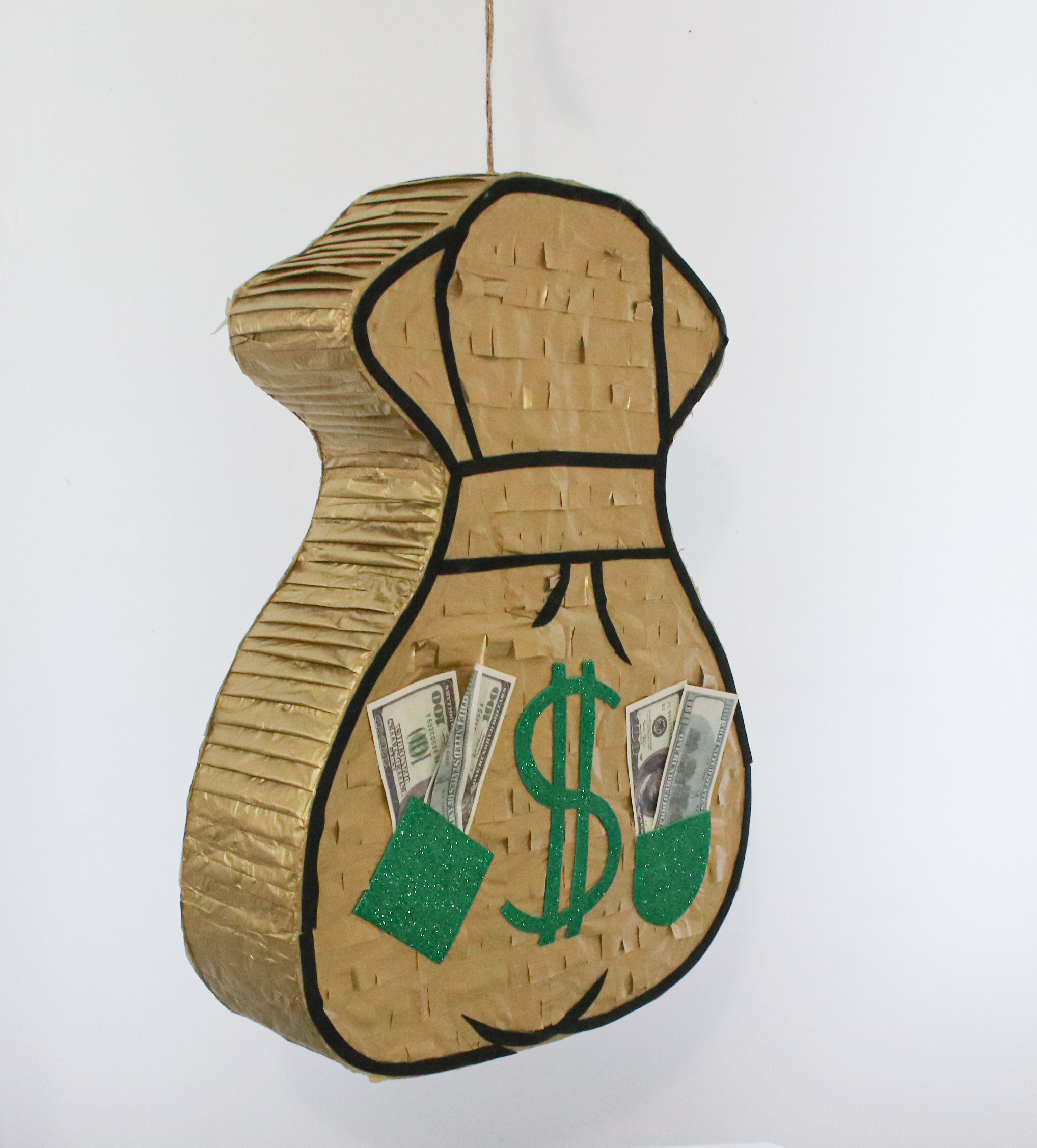 Особенностью этой пиньяты является её дизайн — она выполнена в виде денежного мешка, что добавляет празднику особую атмосферу веселья и символизирует удачу и богатство. Это делает пиньяту отличным выбором для дней рождения, корпоративных вечеринок, детских праздников, а также любых других торжественных событий, где хочется создать атмосферу радости и задора.