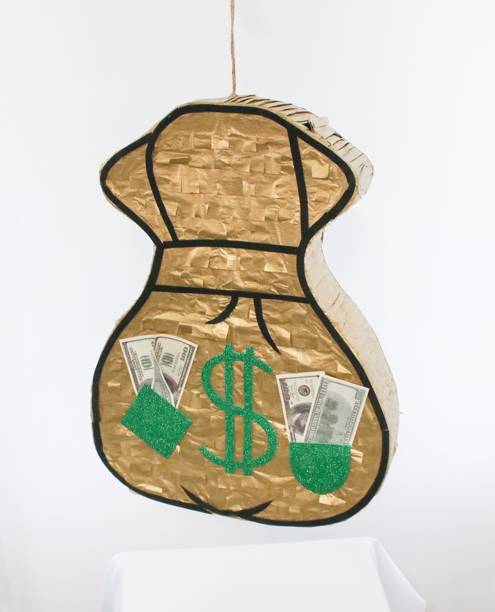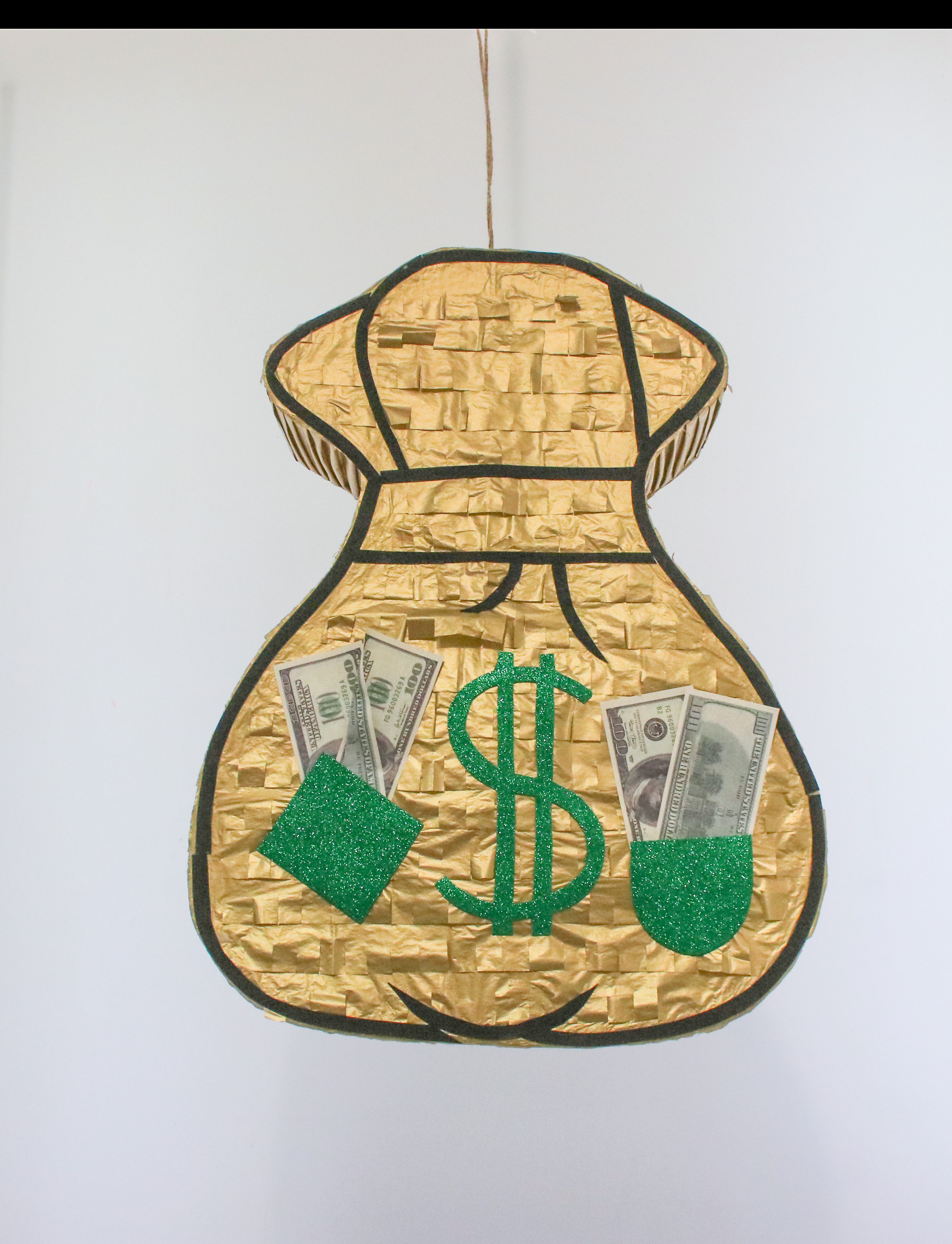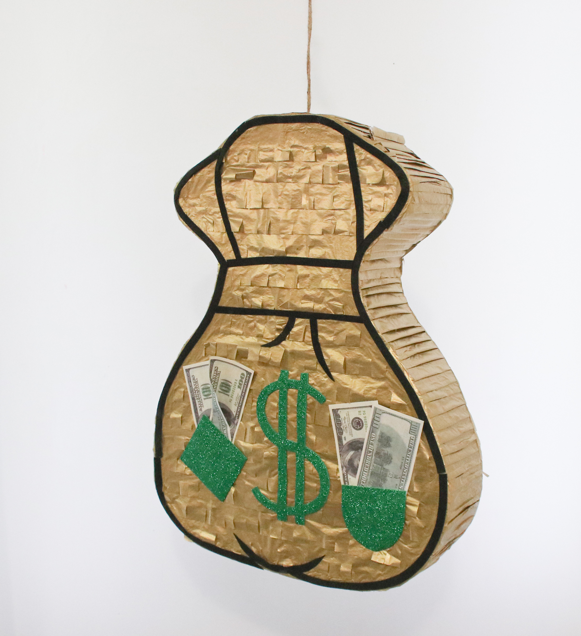 Особенностью этой пиньяты является её дизайн — она выполнена в виде денежного мешка, что добавляет празднику особую атмосферу веселья и символизирует удачу и богатство. Это делает пиньяту отличным выбором для дней рождения, корпоративных вечеринок, детских праздников, а также любых других торжественных событий, где хочется создать атмосферу радости и задора.